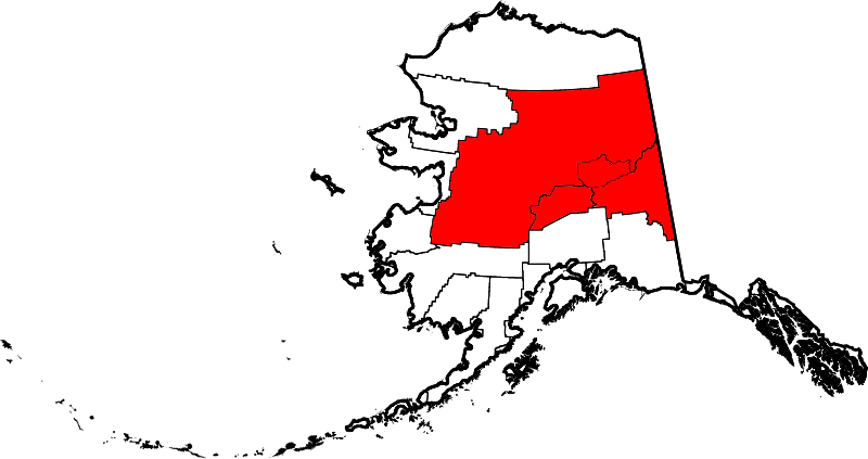 애서배스카(Athabascan)족의 지역인 이곳은 페어뱅크스, 데날리, 타키나 도시들이 있는 알래스카의 중심입니다. 이곳에서는 회색곰으로부터, 카리부 (북미산 순록), 무스, 그리고 알래스카 주새(州鳥) 사할린뇌조 (Willow Ptarmigan)을 보실 수 있습니다. 애서배스카, 금광부, 농부 그리고 모피 덫 사냥꾼들로 인해 이곳 또한 깊은역사를 자랑하며 춥고 어두운 겨울동안에는 많은 분들의 로망인 오로라를 보실 수 있는 곳입니다.