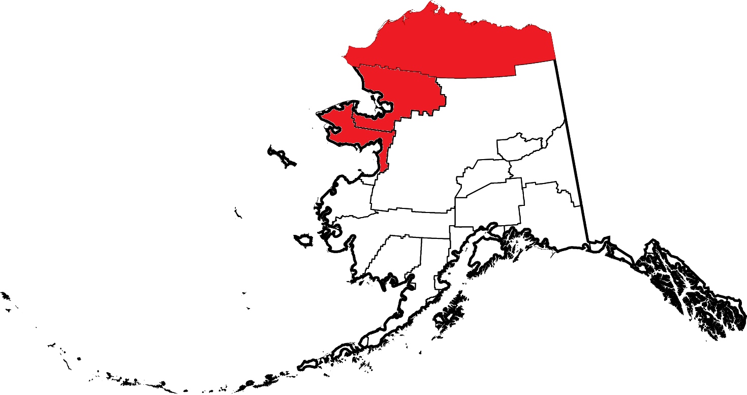 알래스카의 북부지역은 인구가 많지 않으며 이누피아크 족의 지역이고 애서배스카 (Athabascan), 이누피아크 (Inupiaq), 그리고 누나미우트 (Nunamiut) 원주민들이 전통적인 삶을 살 수 있는 환경을 보실 수 있습니다. 또한 북부지역은 골드러시 유적을 포함한 역사와 원주민들의 전통을 가지고 있습니다. 여름에는 해가 절대 지지 않으며 겨울에는 해가 몇 개월 동안 뜨지 않습니다.